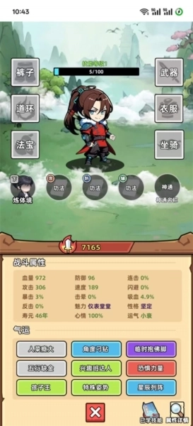 五行灵根系统:角色具备金、木、水、火、土五种灵根属性,不同的功法对灵根有特定的要求。合理搭配灵根属性,能够激活“相生”加成效果;若搭配错误,则会触发“相克”惩罚机制。
