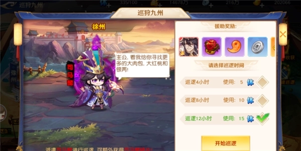 武将进行巡逻活动时会消耗体力,依据巡逻时长的不同,所需体力被划分为三个档次。