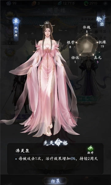 机缘属性会影响战斗时攻击和暴击倍率随机到较高数值的概率,同时也关联着部分奇遇事件的触发、支线剧情的开启与走向。每个弟子从诞生起,这项属性就已固定,终生无法更改,即便是氪金也没办法改变这一设定哦~