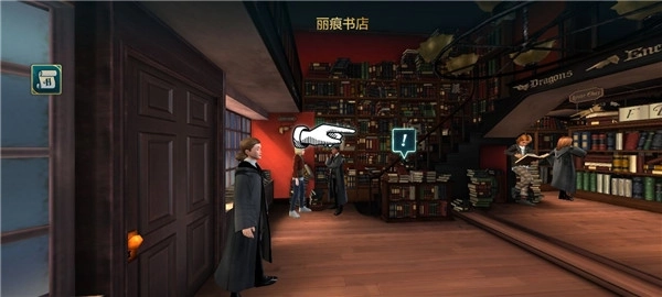 7、首要任务是前往书店购书并学习魔法,操作方式为点击感叹号。