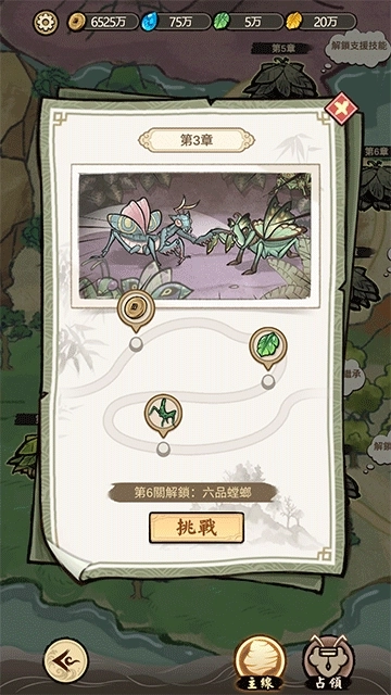 3、当拥有更多、更强的螳螂后,可点击“关卡”开启战斗模式。