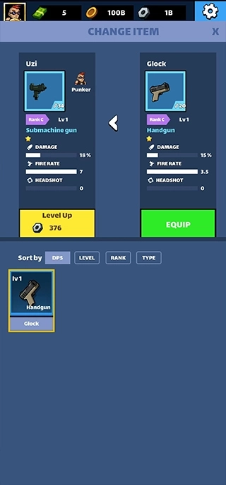 6、点击枪械,把更强力的武器替换上去,也能对武器进行升级。