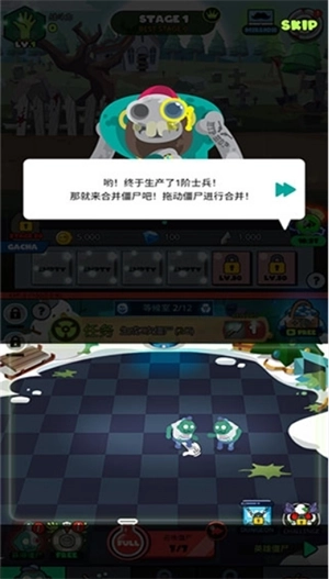 3、嘿!总算造出1阶士兵啦!接下来该合并僵尸咯!快拖动僵尸来完成合并吧!