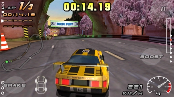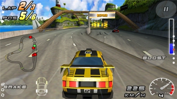 3、这款游戏运用了重力感应的操控机制,操作起来相对简便,只需倾斜设备就能操控赛车完成转弯动作。