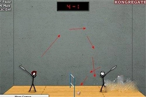 两边火柴人身后的墙壁能让羽毛球弹回,玩家成功回击的话本身没什么不同,但这会给对手创造一个绝佳的位置——球一旦打到墙上,基本就能得分啦~!