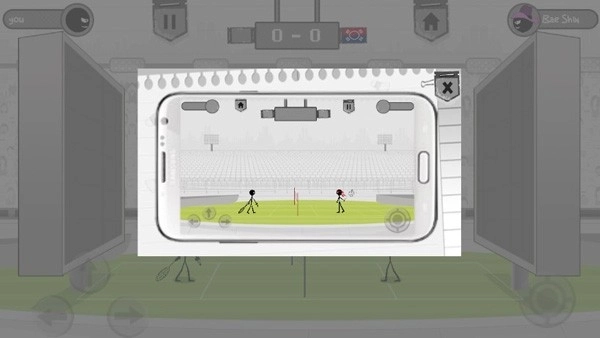 两边火柴人身后的墙壁能让羽毛球弹回。对玩家而言,成功将球击回和球碰到墙壁弹回的结果并无不同,但后者会把对手置于非常不利的位置——球一旦打到墙上,基本就能得分啦!