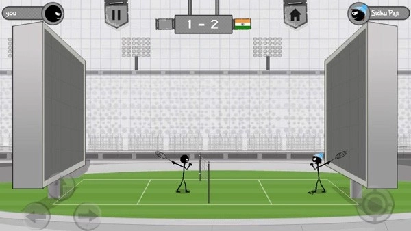 在游戏里,火柴人的动作只有前进、后退和跳跃这几种,因此玩家只需操控左侧的方向键以及右侧的击球键,就能熟练地游玩这款游戏了。至于火柴人的击球范围,其实就是它手中羽毛球拍的长度,只要羽毛球处于球拍能够挥到的区域内,都能被成功击回。
