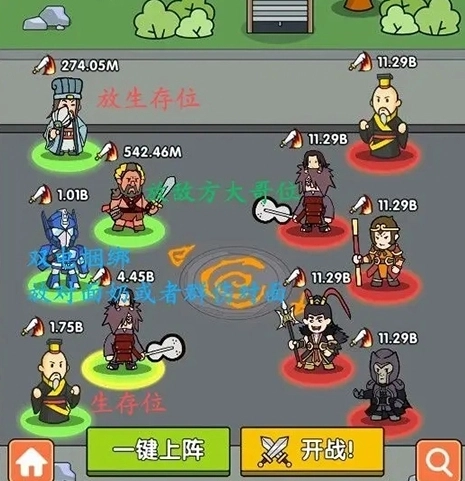 1、当前版本中,诸葛亮、凯撒、赛博之柱、始皇帝、红眼隐忍这套组合强度顶尖,其中仅有诸葛亮是可以替换的位置;始皇帝与红眼隐忍是核心培养对象,务必重点投入资源,这套阵容的优势在于技能触发条件宽松、角色出手速度快,搭配得当的情况下,即便面对战力高出己方近一倍的关卡也能轻松推进。