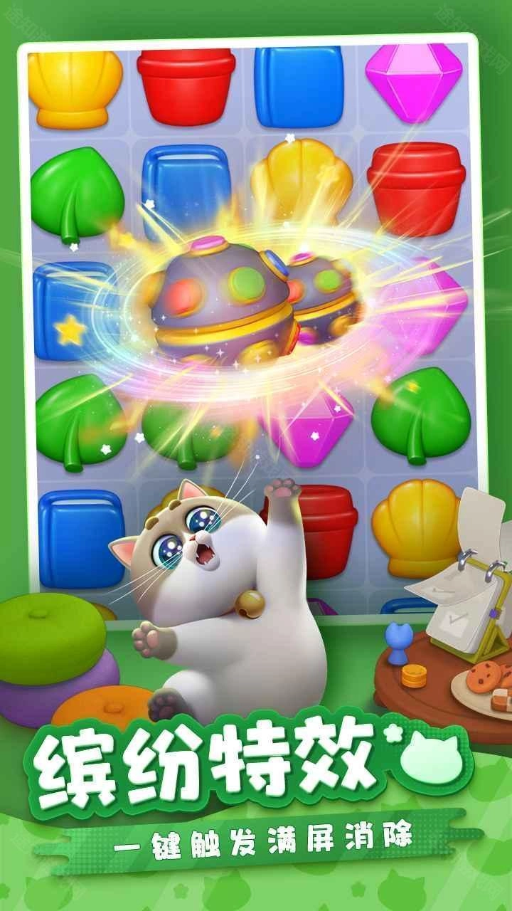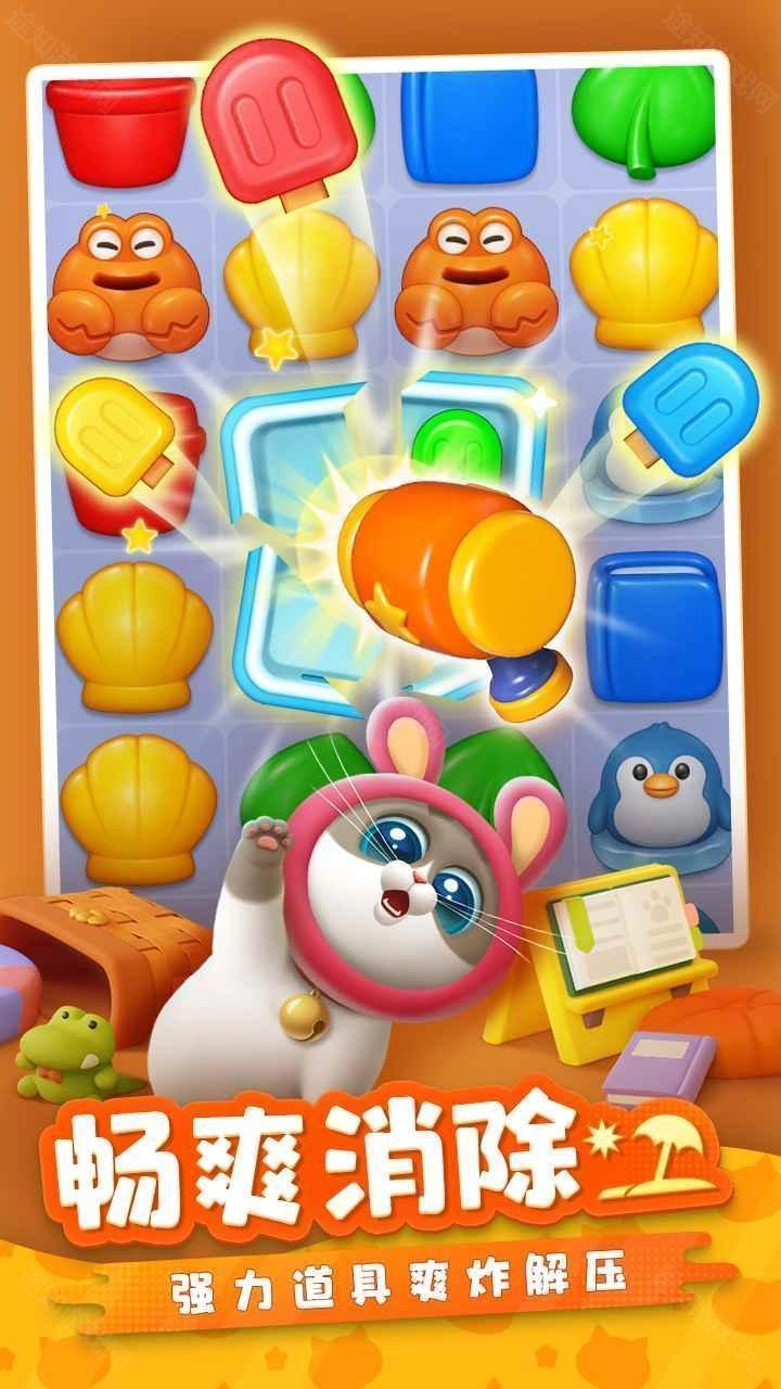 3、【民宿“猫掌柜”,软萌治愈常伴左右】《假日乐消消》里的首席心灵陪伴官是一只叫毛毛的猫咪,不管是闯关挑战还是建造家园,它都全程相守——为你加油打气、撒娇卖萌,偶尔也会调皮耍宝。轻轻点击屏幕,就能和它来一场亲昵互动。(别担心,不会有掉毛烦恼哦!)