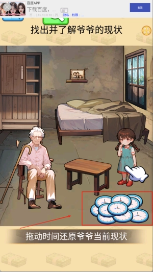 2、解锁时光回溯系统助力老人重返青春岁月,搭配核心道具与剧情节点推动角色蜕变,打造别出心裁的游戏机制与触动人心的情感共鸣体验。