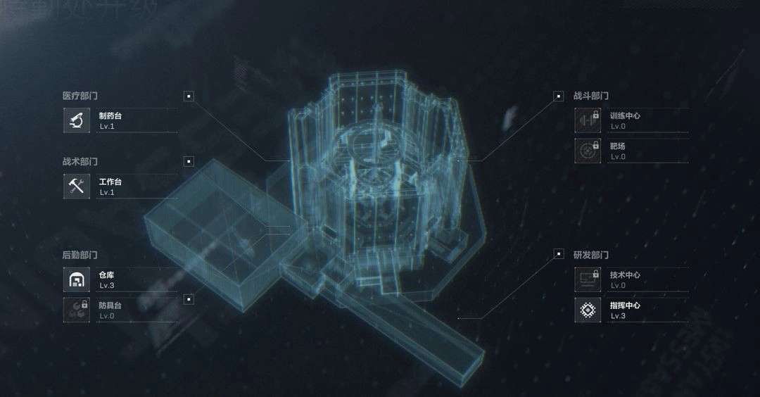 解锁部门功能以及对其进行升级,都必须满足规定的行动等级要求,同时还要提交指定的物资。