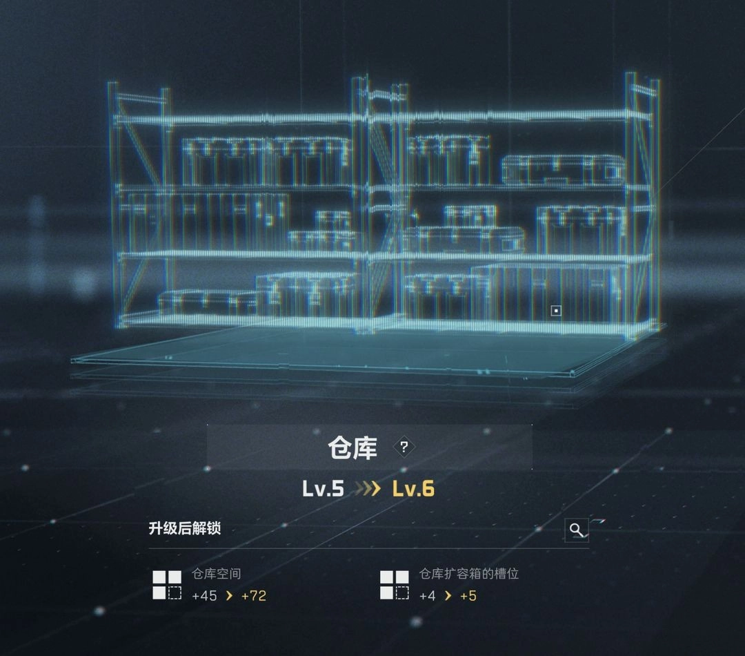 仓库是干员们存放物资的场所,升级后能够提升仓库容量与扩容箱槽位,便于干员们储备更多物资。