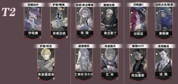 一、这个配队包含2名主C、1名奶妈、1名辅助和1名前排,核心输出由希波蒂与范海辛交替承担,阿卡贝拉负责辅助,伊甸娜作为奶妈提供回血,西奥法纳则通过嘲讽来抗伤。