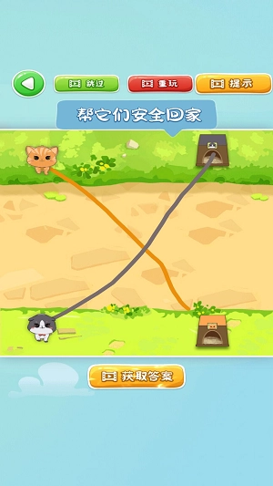 快乐连一线,快乐连一线是一款国产热门的趣味休闲益智游戏,快乐连一线这款高画质游戏采用了顶尖游戏引擎技术研发制作,帮助小动物们回到自己的家,易于上手,我们需要帮助小猫们顺利的找到自己的小屋,你将有机会得到你想要的奖励,你能够在游戏中通过画线的方式,游戏中玩家需要用连线的方式引导小动物们安全回家,这款游戏当中的主要游戏方式就是通过连线的游戏方式来进行着很好的游戏挑战。更多好玩的模式技巧等你来探索。