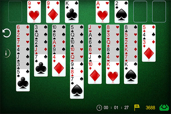 1. 需依据纸牌的花色与数字排序,通过点击即可进行直排摆放。