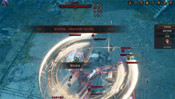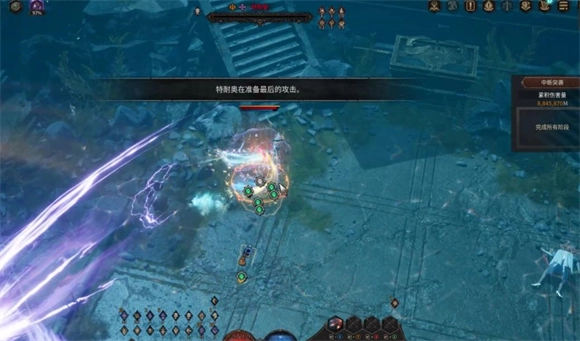 在通过扭曲空间机制后,直到BOSS空血前,它会再释放一轮第二阶段的技能,按之前的方法躲避即可。最后BOSS空血时会强制锁血到1%,此时无法将其击杀,屏幕会出现提示——BOSS即将发动最后攻击,也就是临死前的狂暴。这时BOSS会移动到场地中间,从三种全屏技能里随机选两种释放: