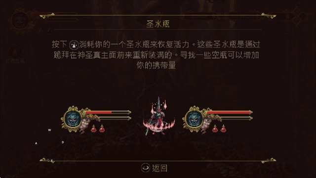 按下一个圣水瓶来恢复活力,这会消耗掉它。这些圣水瓶需要跪拜在神圣真主面前才能重新装满。寻找空瓶能够让你携带更多的圣水瓶。