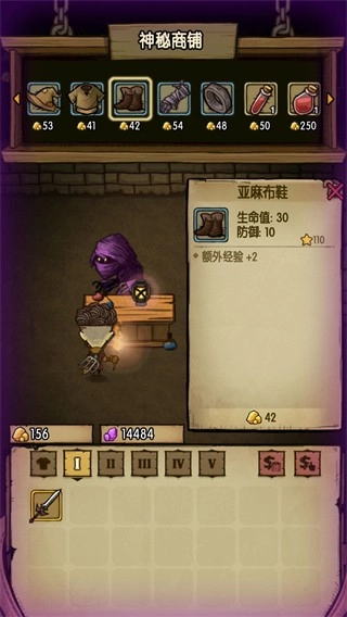当你集齐这四件装备后,剩余的金币(必然会有结余)可以用来在黑市商人处选购增加攻击力或最大攻击属性的装备,购入后直接装备即可,具体可参照图示操作。