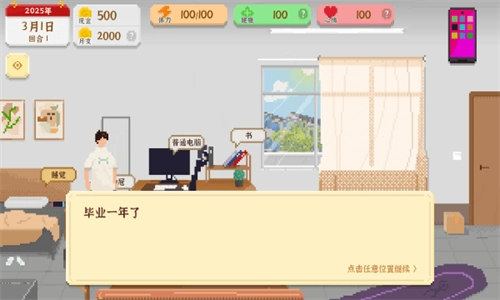 《我独自生活》是一款生活模拟游戏,主角设定为刚从大学毕业的年轻人,游戏采用经典的像素风格,为玩家营造出复古又亲切的体验。在游戏中,玩家不仅要展现生存能力,还需关注角色的情感变化与心理成长,通过完成一系列任务和挑战,能更深刻地体会现实生活里的困难与机遇。
