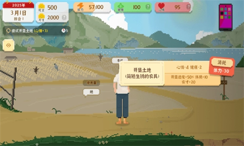7、有了农具后,接下来要做的就是开垦农田,这些都需要耗费体力。