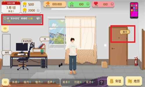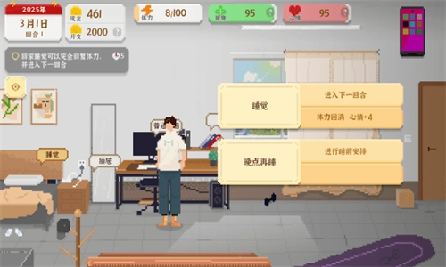 10、要是没有事情可做了,就回家睡觉吧,这样能直接恢复满体力,以便开启下一回合。