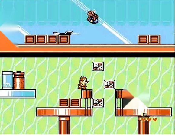 5.继续往前走,一只老鼠挡住了去路,咱们先跳到下方的路,然后从它底下安全通过。