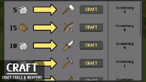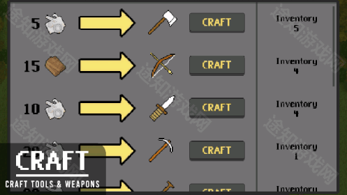 6、玩家也能够收集材料,制作如斧头、弓箭、匕首之类的武器,用于狩猎与防守。