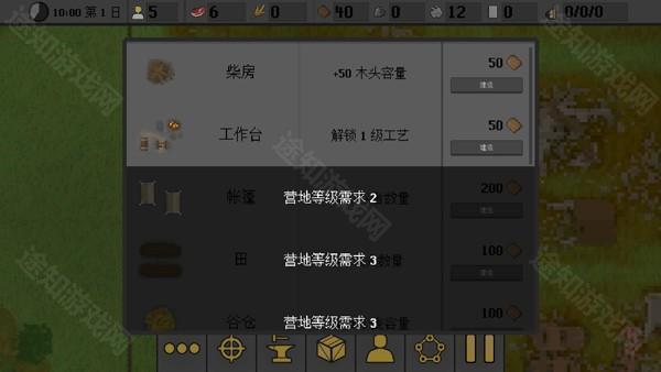 5、在空地上,玩家能够建造柴房、工作台等各类建筑。并且,当营地等级逐步提升时,可供玩家建造的建筑种类会越来越多。