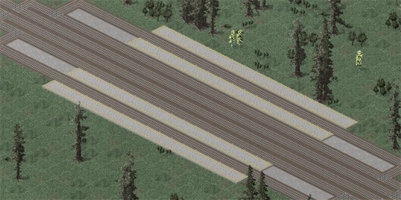 2、首先需要铺设道路,一般来说,火车站的两侧都会设有道岔,可以查看现实生活中的铁路空中图然后来铺设铁路。