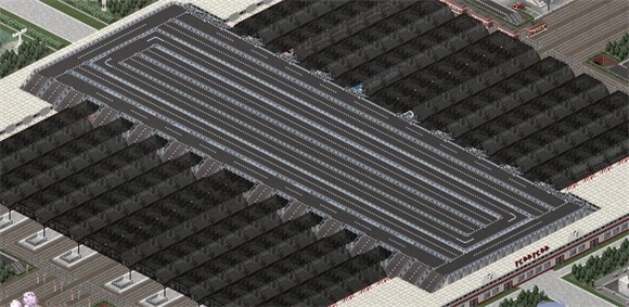 5、雨棚搭建好后需要建设站房,一般的火车站侧式站房16格左右就够了,一侧放置两组(也就是宽度为两格)。大型火车站的侧式站房可以放置三组。高架站房由于没有相关的插件,比较难建。一般是用国道(离地两格)充当高架站房,效果还不错。
