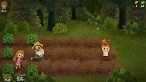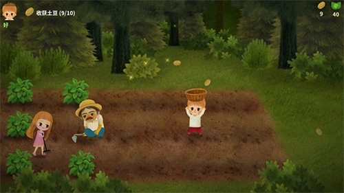 4、通过点击角色附近的土地即可收获土豆,在画面左上角会有相应的任务需求显示;