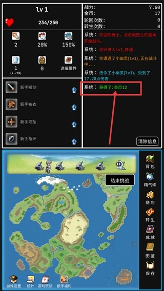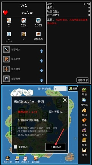 4、持续用副本获得的金币强化装备(如将新手短剑强化至+3),逐步提升攻击力与整体战力,为挑战更高等级、更高难度的副本做准备。