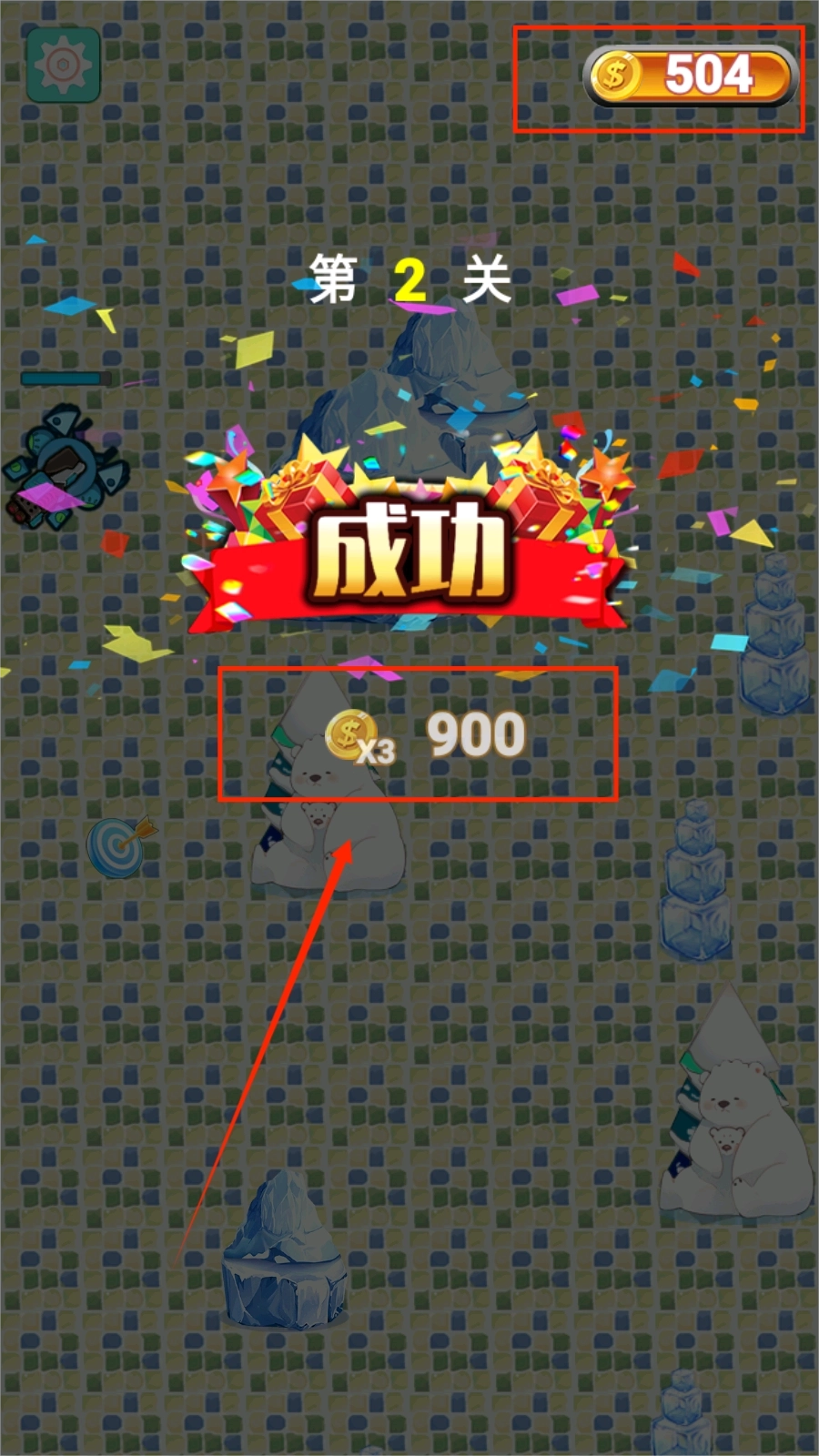 3、每通过一个关卡挑战都能得到金币奖励,右上角显示的是你累计获得的金币数量。