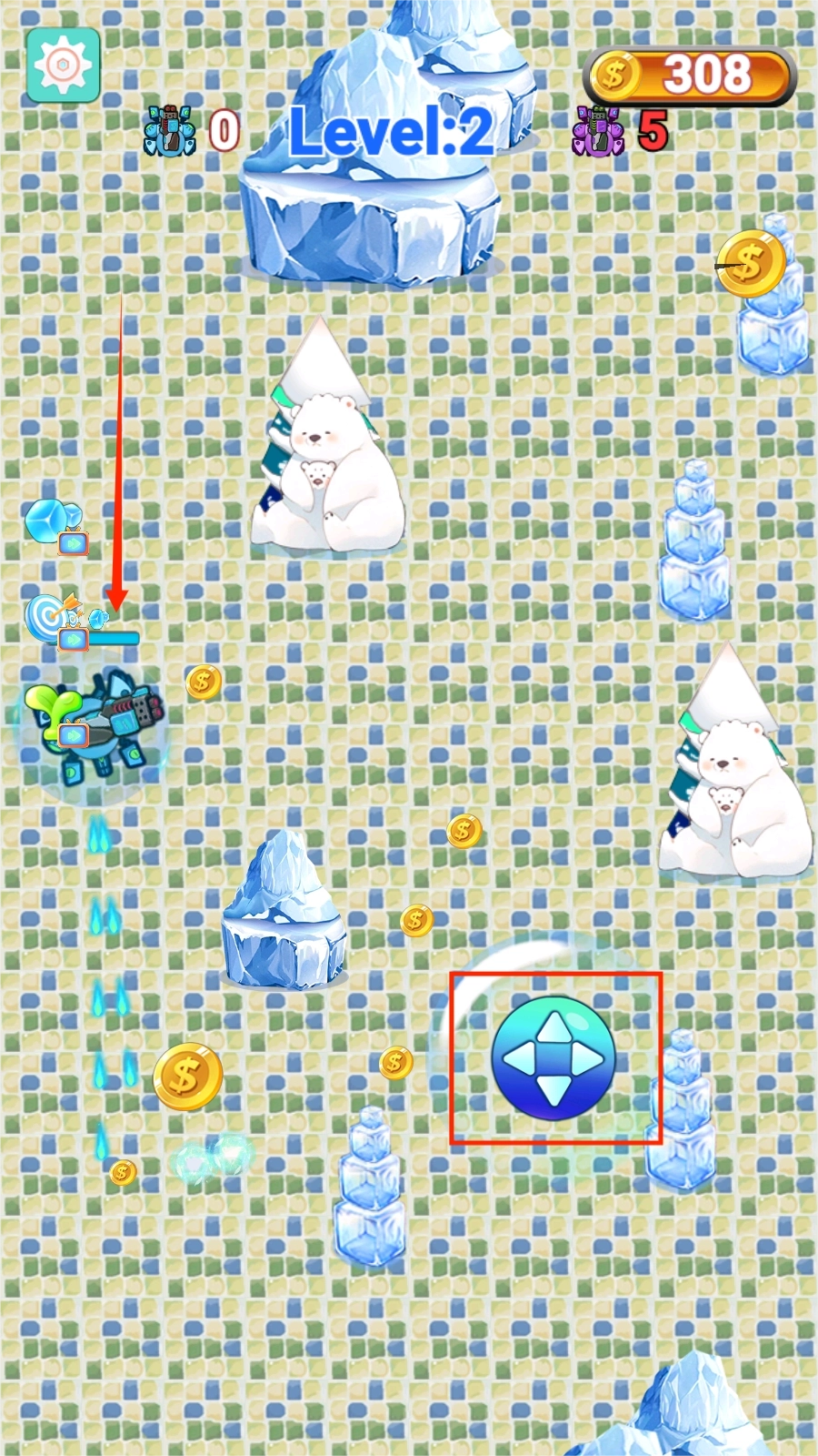 2、通过控制箭头进行机甲小蟹的移动和射击。