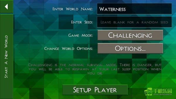 4、点击“new world”后,我们需要对创建的世界进行自定义设置,完成设置后点击“setup player”