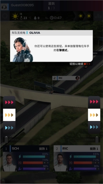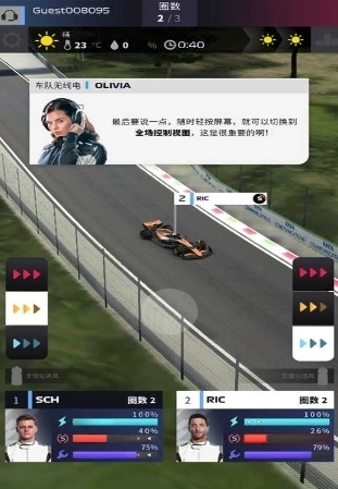 3、接着进入比赛环节,这里有玩家的两位车手,在比赛过程中,玩家能够对他们进行管理。