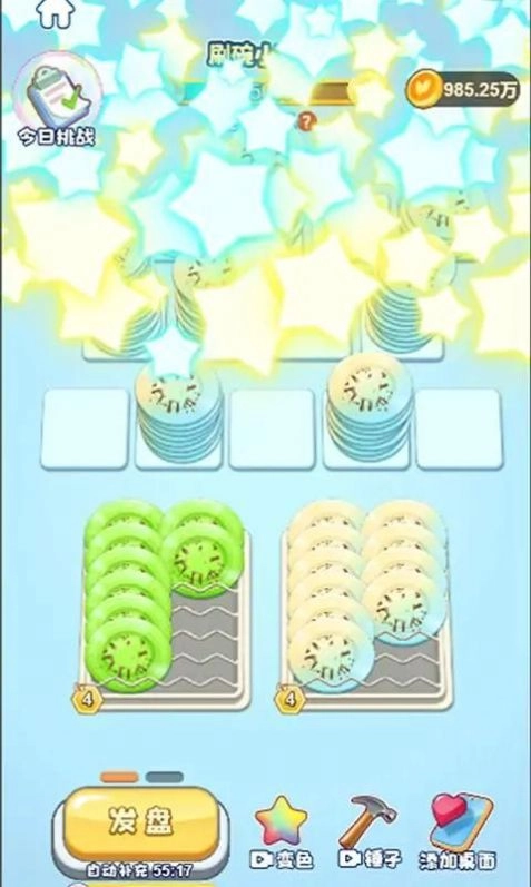 3、创新的盘子堆叠机制,需要你动脑筋找到最佳的叠放方式。