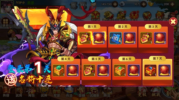 新手前七天登录即可领取“筑基礼包”,里面包含核心武将、进阶丹药以及10连抽机会,只要合理规划使用这些资源,就能快速打造出成型的战力。