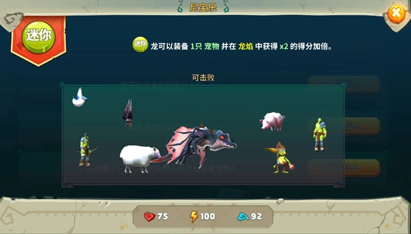 迷你龙能够携带1只宠物,并且在龙焰状态下得分会翻倍(×2)。