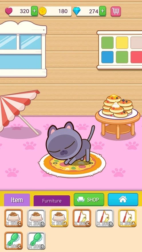 2、如果你和猫一起玩,我很乐意跳舞,一个可爱有趣的游戏,可以装饰自己的房间并养猫