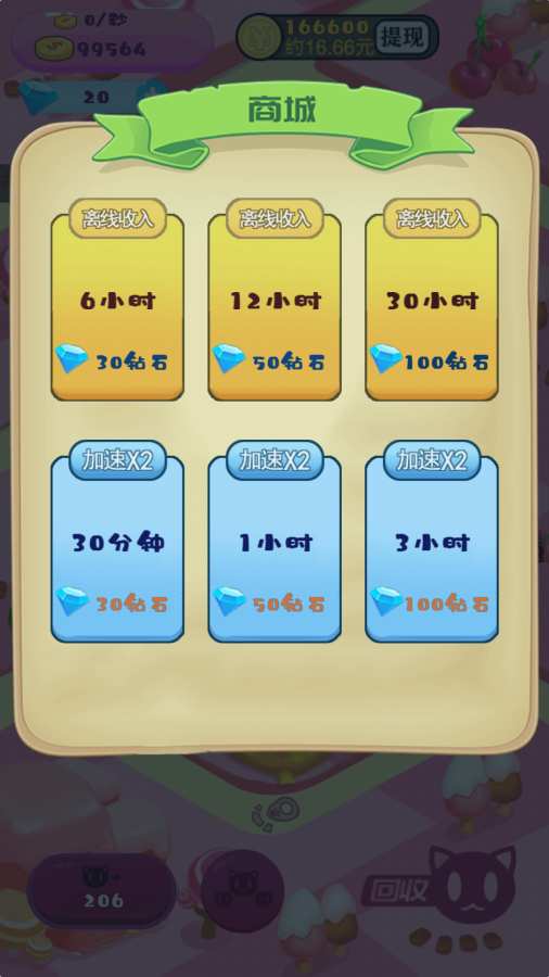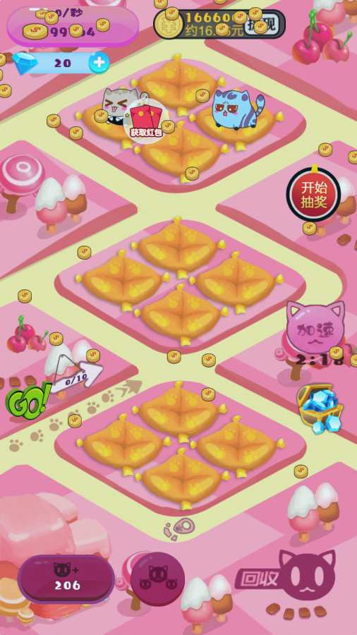 2、放置挂机就可以开启自动模式,有猫咪达到条件后会自动合成全新的猫咪,放心挂机。