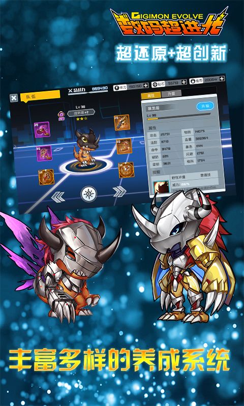 玩家阵中的数码宝贝们均可多线成长,阵容技巧性搭配轻松以弱胜强。极致策略,战术绝杀,无限可能让游戏更具挑战。