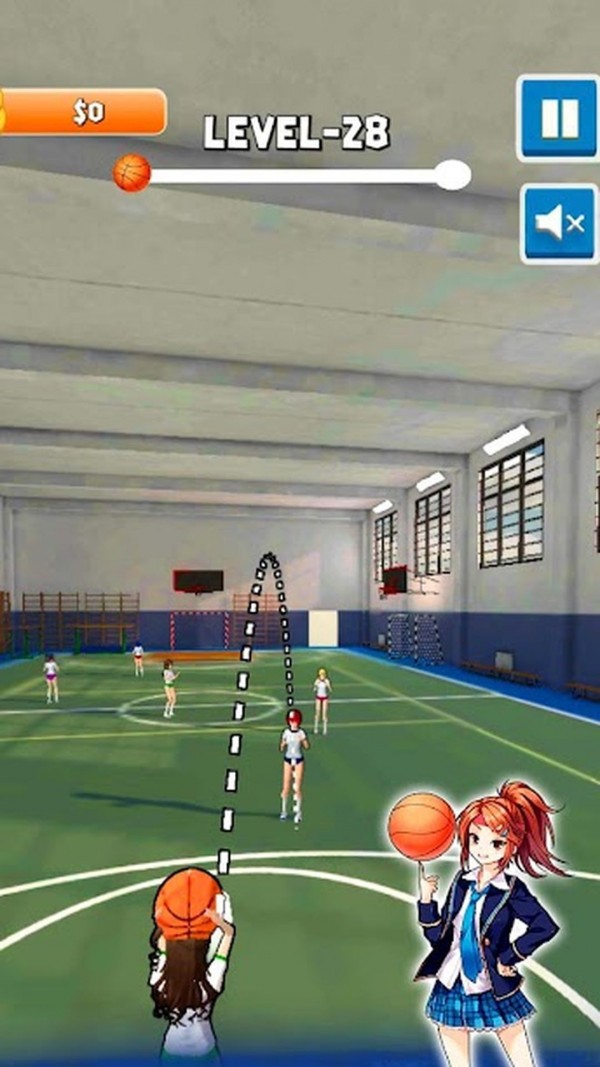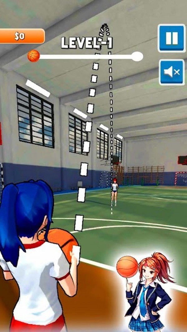 1、和可爱的美少女一起打篮球吧,在室内篮球场完成各种投篮挑战。