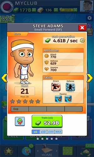 放置篮球巨头游戏中有很多球队可以选择,不同球队角色的能力属性不一。