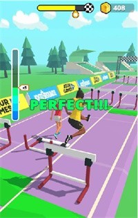 1、这是一场体育接力赛,运动开始之后,运动员会自动前进,只需要在运动员跑到绿色区域时点击屏幕即可。