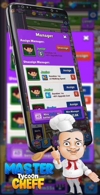 主厨空闲大亨(Master Cheff Idle)是一款美食制作模拟游戏,在这里你将变成一位餐馆的大厨,每天需要给顾客制作各种菜肴,完成每日的营收任务,游戏支持的玩法很多,你可以不断升级自己餐厅的设施,以吸引更多顾客前来消费,玩法很有趣,感兴趣的玩家快来下载体验吧!