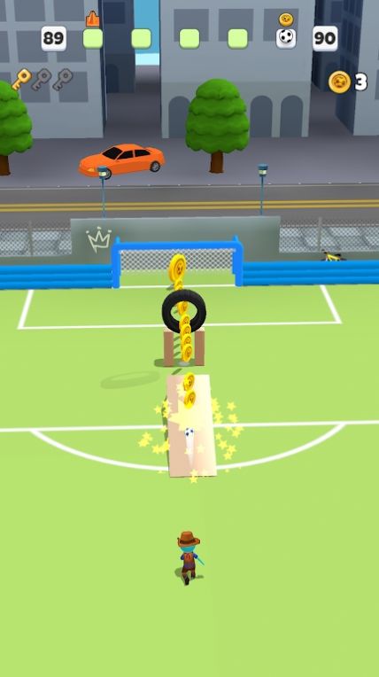 3、球员的任务是通过画一条线来控制球的方向,并把它踢到适当的地方。