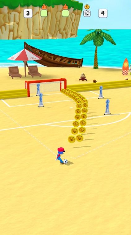 3、关卡中你要用你的手指来划线控制,然后需要发挥出自己踢球技术,踢进更多的球,获得更多的分数即可。