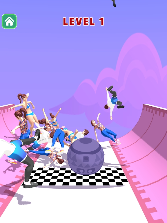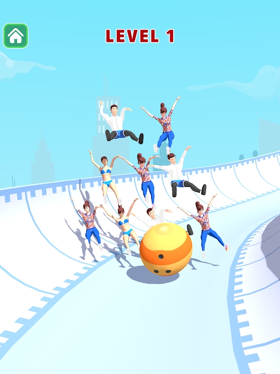 1、游戏中,玩家需要使用保龄球击倒滑上去的人,击倒的人越多,获得的分数就越高。