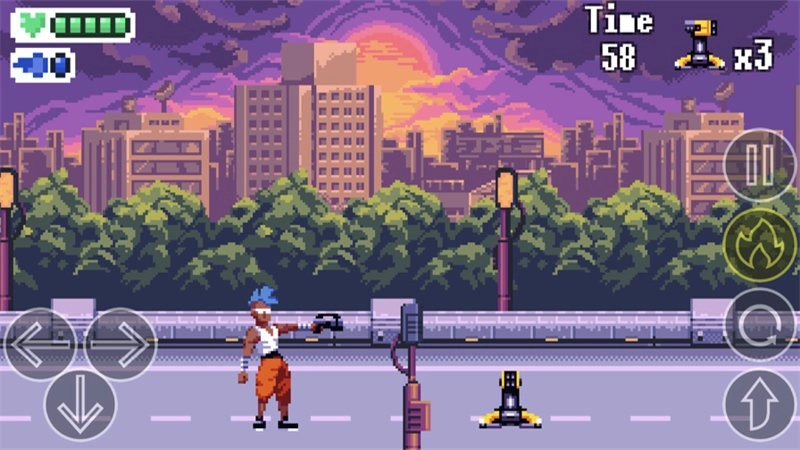 2、横版的像素画风,让游戏充满了街机风味,各种都市战争节奏极快。